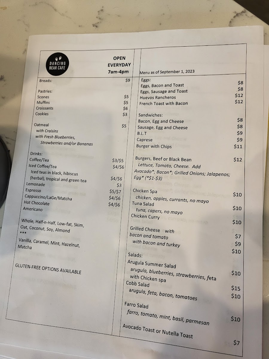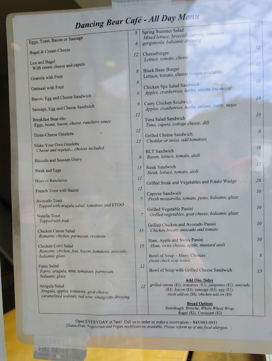 Welcome to Dancing Bear Cafe, a delightful gem located in the heart of Pawling, NY. This charming café offers a diverse menu that guarantees satisfaction for every palate. Start your day with a range of drinks, from the smooth Americano to a relaxing Chai Latte, available hot or iced with customizable flavors.